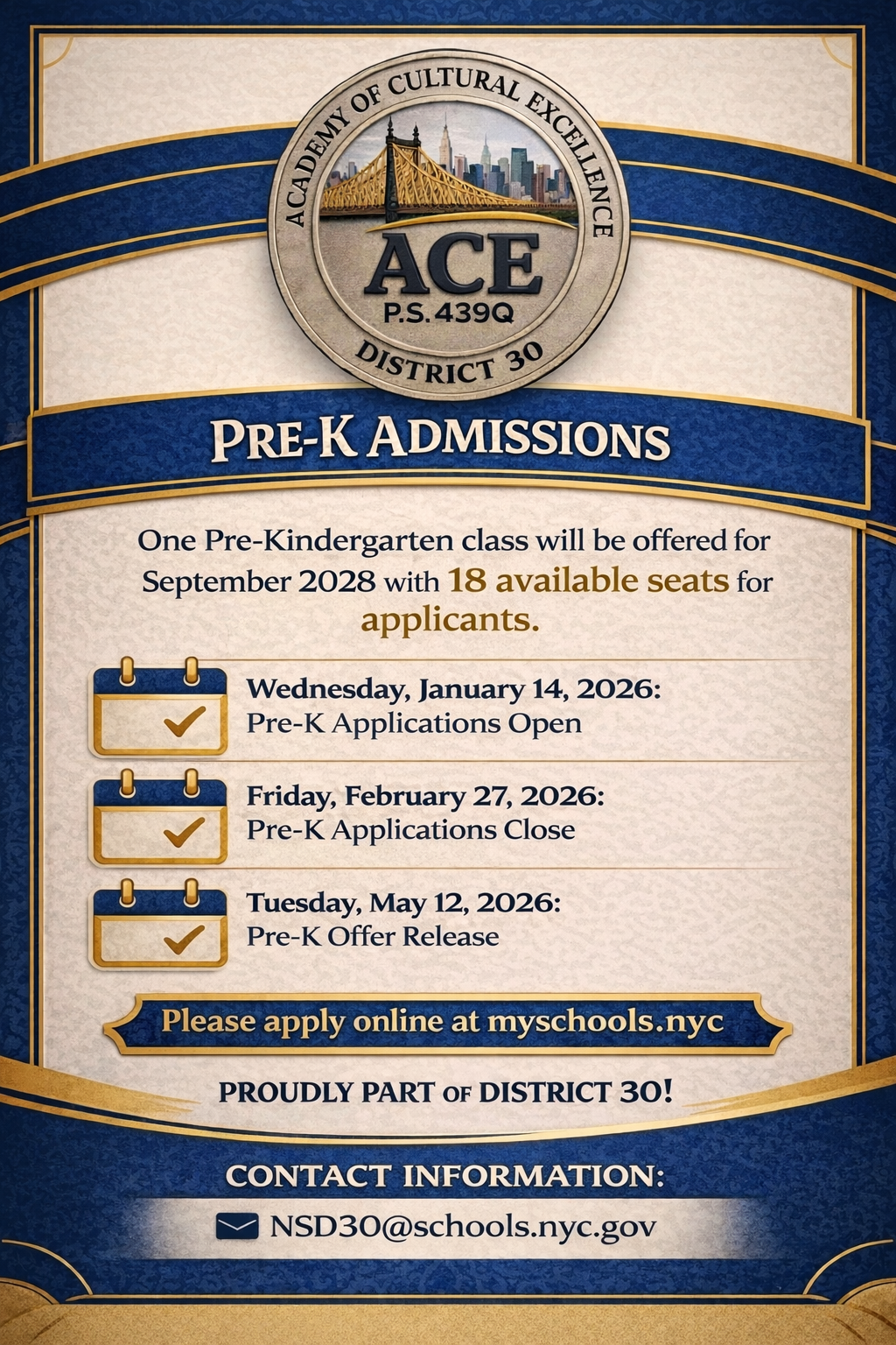 Pre-K Admissions – Important Dates